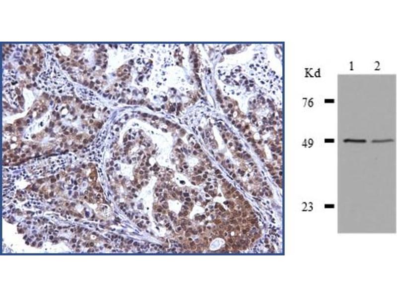 EAPII (also called TTRAP, TDP2) originally was identified as an interacting partner of oncogene ETS1, a founding member of ets transcription factor, and the cytoplasmic domain of CD40, a member of the tumor necrosis factor (TNF) receptor family. EAPII significantly represses ETS1 transcriptional activity and the synergistic transactivation by ETS1 and AP-1 or by ETS1 and NFκB. EAPII/TTRAP also inhibits the transcriptional activation of NFB induced by CD40 or phorbol 12-myristate 13-acetate (PMA). Recently this protein was also proven to be the first 5'- tyrosyl-DNA phosphodiesterase. EAPII has been demonstrated to have promiscuous protein associations, broad responsiveness to various extracellular signals, and pleiotropic functions in the development of human diseases including cancer and neurodegenerative disease. Emerging data suggest that EAPII is a multi-functional protein: it repairs enzyme (topoisomerase)-mediated DNA damage by removing phosphotyrosine from DNA adducts, involves in multiple signal transduction pathways such as TNF-TNFR, TGFβ and MAPK, and responsive to immune defense including inflammatory response, viral infection and DNA toxins (chemo or radiation therapy). EAPII predominantly localizes to the nucleus, but based on pathological conditions it also localizes in both cytoplasm and nucleus.