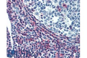 Immunohistochemistry (paraffin sections): Recommended dilution: 10 μg/mL, positive tissue: tonsil. -