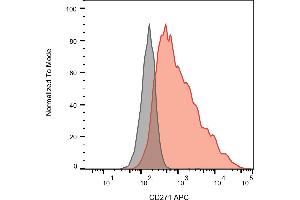 - Purified antibody is conjugated with activated allophycocyanin (APC) under optimum conditions and unconjugated antibody and free fluorochrome are removed by size-exclusion chromatography.