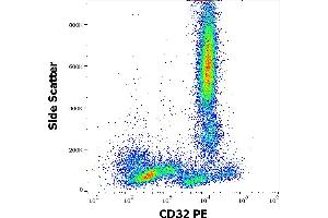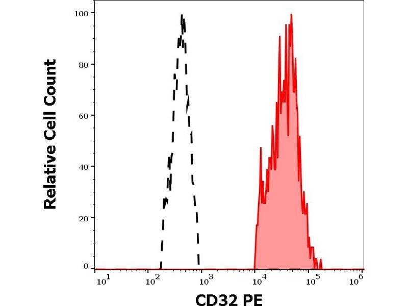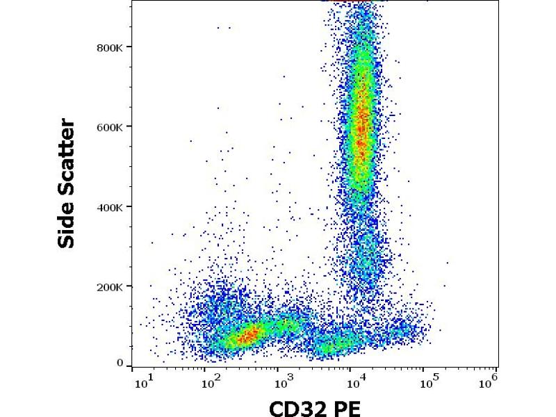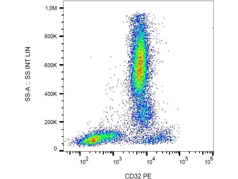 Fc fragment of IgG receptor IIa,CD32 (FcgammaRII) is a low affinity receptor for aggregated IgG. It is strongly expressed on monocytes, granulocytes, myeloid and myeloblastic cell lines, and weakly on B cells, CD34+ bone marrow cells, and resting and activated platelets. After binding its ligand, CD32 induces IgG-mediated phagocytosis and oxidative burst in monocytes and neutrophils, whereas in B cells it mediates a negative signal. This polymorphic transmembrane glycoprotein is expressed not only in the activating (CD32a) and inhibitory isoform (CD32b), but also in individual variants with differing avidities for IgG subtypes (e.g. the CD32a131R and CD32a131H allotypes).,FCG2, FCGR2A, IGFR2