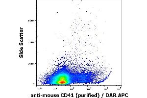 The rat monoclonal antibody MWReg30 recognizes an extracellular epitope of CD41 (GPIIb), a transmembrane glycoprotein (integrin family) composed of two chains GPIIb alpha (heavy chain, 120 kDa) and GPIIb beta (light chain, 23 kDa). CD41 is mainly expressed on platelets and megakaryocytes.