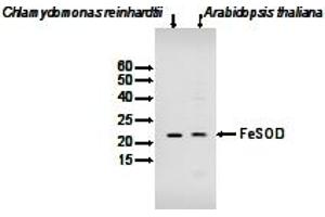 The antibody will detect FeSOD enzyme only in plants grown on low Cu (0.1 µM).Reference: Salah et al (2005) Two P-type ATPases are required for copper delivery in Arabidopsis thaliana chloroplasts. Plant Cell, 17, 1233-1251