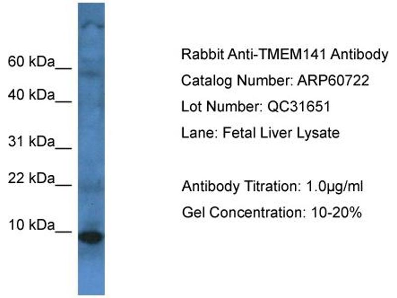 - This is a rabbit polyclonal antibody against TMEM141. It was validated on Western Blot.