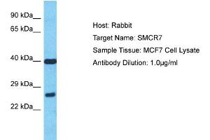 - The immunogen is a synthetic peptide directed towards the N-terminal region of Human SMCR7