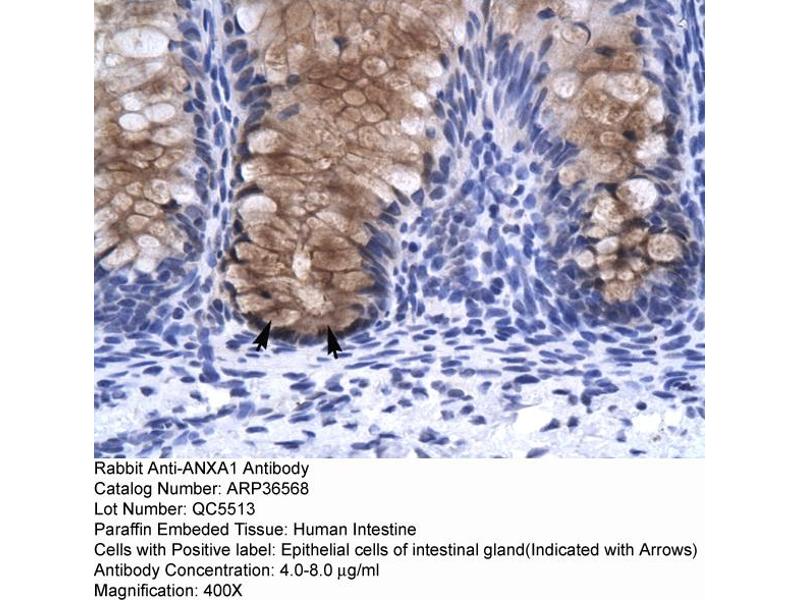 This is a rabbit polyclonal antibody against ANXA1. It was validated on Western Blot and immunohistochemistry.