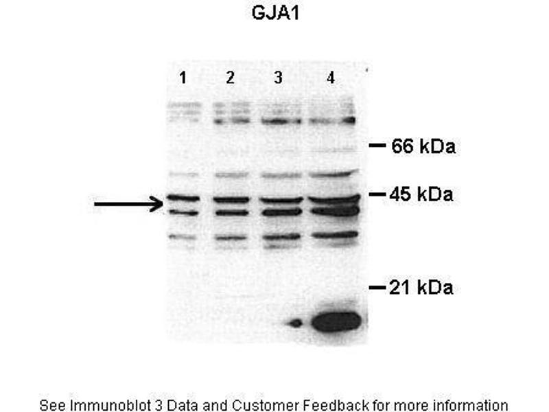 Quick Overview for Connexin 43/GJA1 抗体 (N-Term) (ABIN2774853)