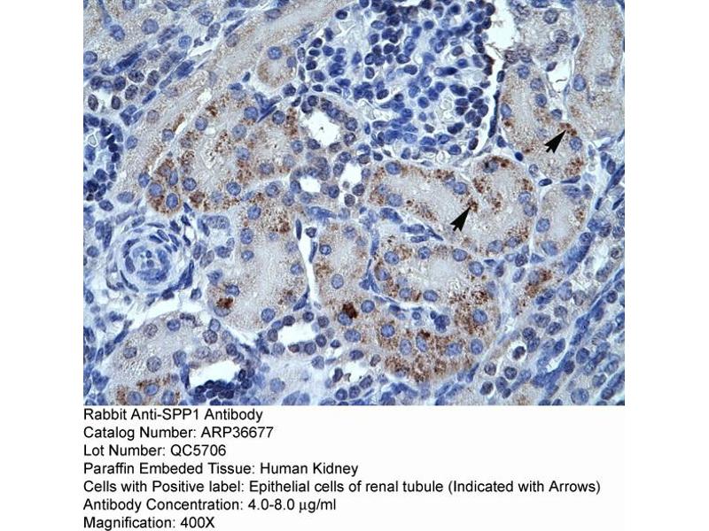 - This is a rabbit polyclonal antibody against SPP1. It was validated on Western Blot and immunohistochemistry.