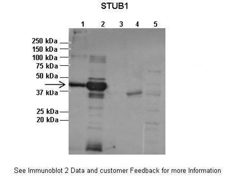 - The immunogen is a synthetic peptide directed towards the N terminal region of human STUB1