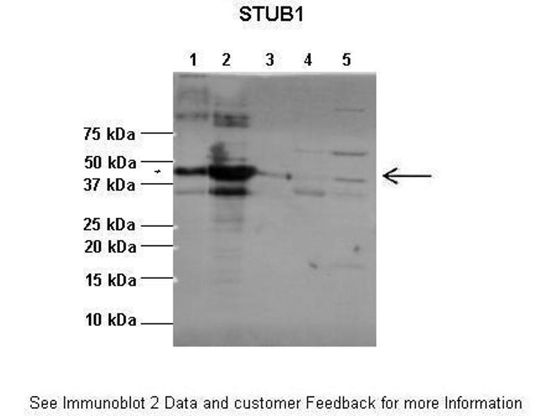 - The immunogen is a synthetic peptide directed towards the C terminal region of human STUB1