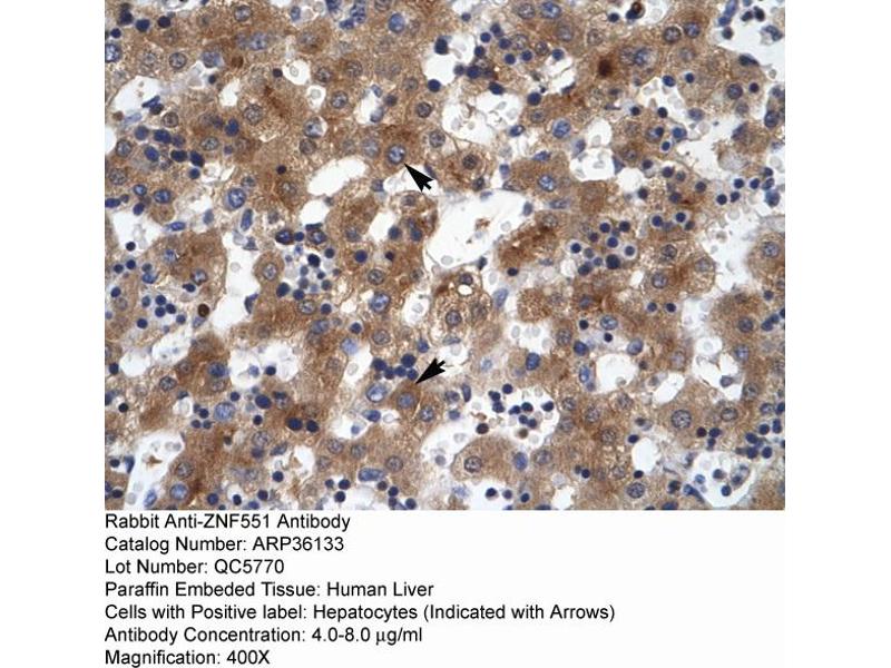 - This is a rabbit polyclonal antibody against ZNF551. It was validated on Western Blot and immunohistochemistry.