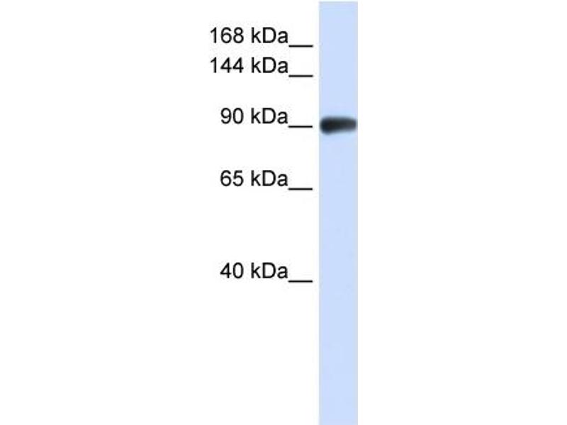 This is a rabbit polyclonal antibody against RAD54B. It was validated on Western Blot using a cell lysate as a positive control.