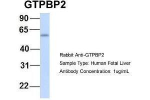 - This is a rabbit polyclonal antibody against GTPBP2. It was validated on Western Blot using a cell lysate as a positive control.