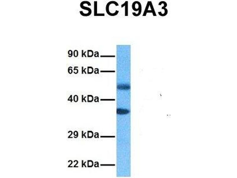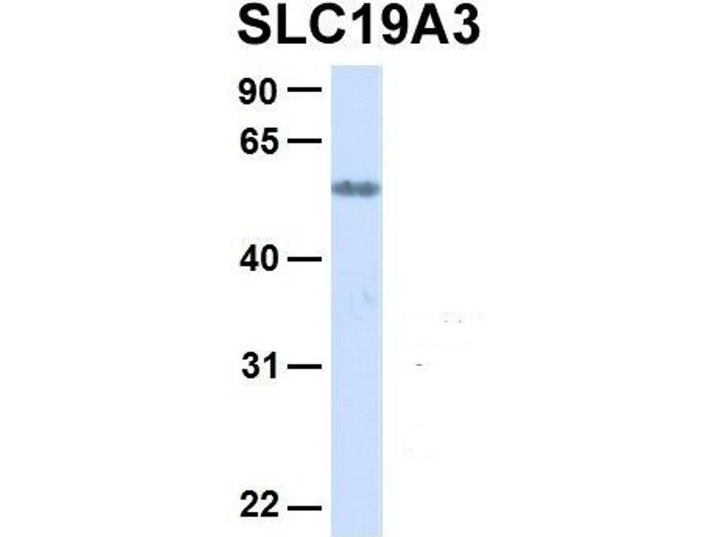 - This is a rabbit polyclonal antibody against SLC19A3. It was validated on Western Blot using a cell lysate as a positive control.