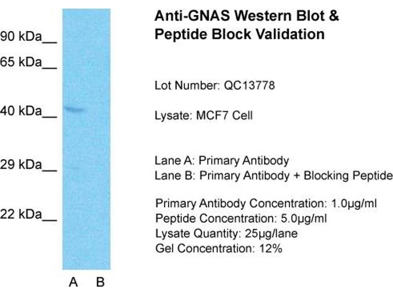 - This is a rabbit polyclonal antibody against GNAS. It was validated on Western Blot using a cell lysate as a positive control.