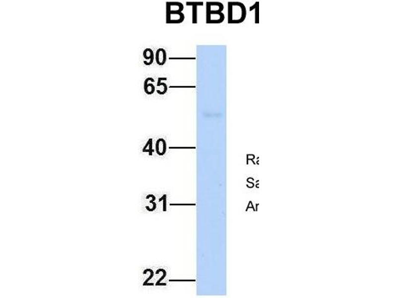 - The immunogen is a synthetic peptide directed towards the N terminal region of human BTBD1