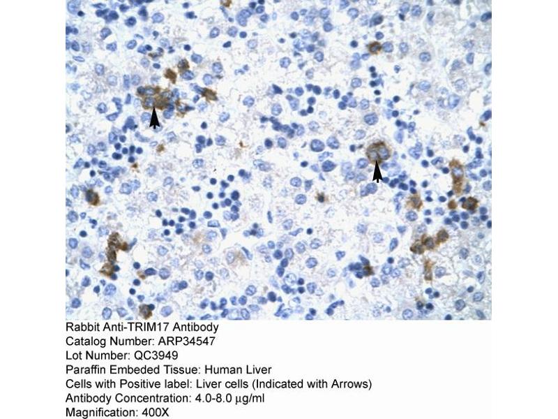 - This is a rabbit polyclonal antibody against TRIM17. It was validated on Western Blot and immunohistochemistry.