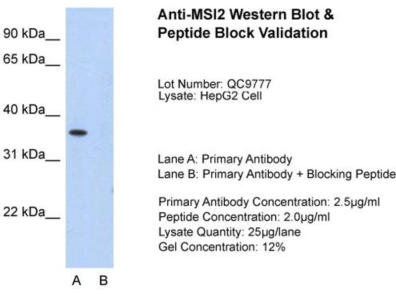 - This is a rabbit polyclonal antibody against MSI2. It was validated on Western Blot and immunohistochemistry.