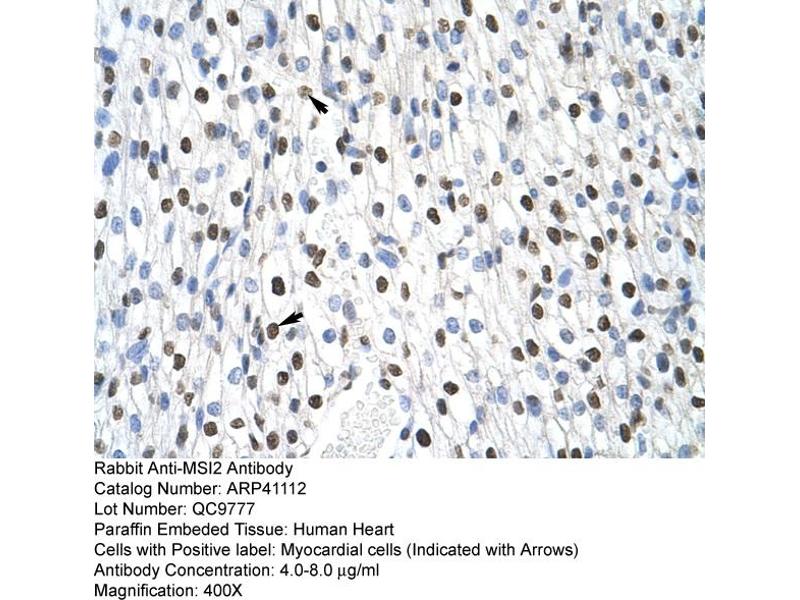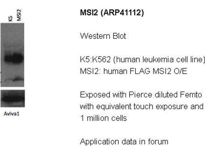 - The immunogen is a synthetic peptide directed towards the N terminal region of human MSI2