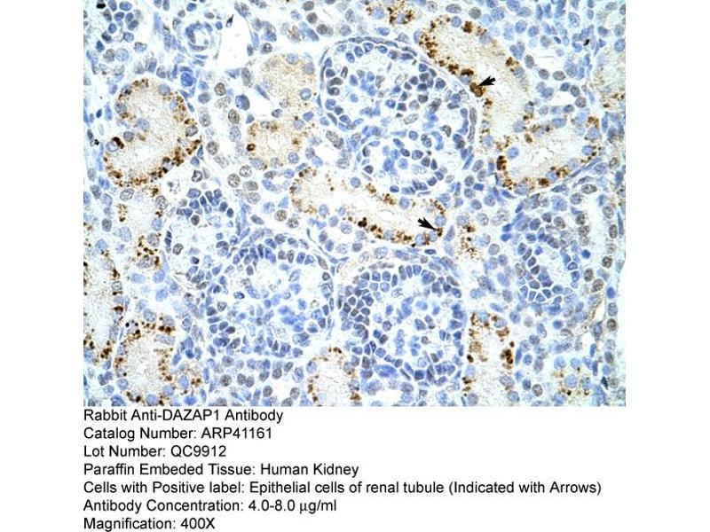 - This is a rabbit polyclonal antibody against DAZAP1. It was validated on Western Blot and immunohistochemistry.