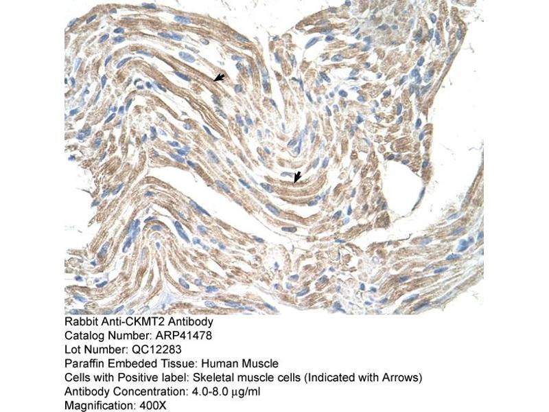 This is a rabbit polyclonal antibody against CKMT2. It was validated on Western Blot and immunohistochemistry.