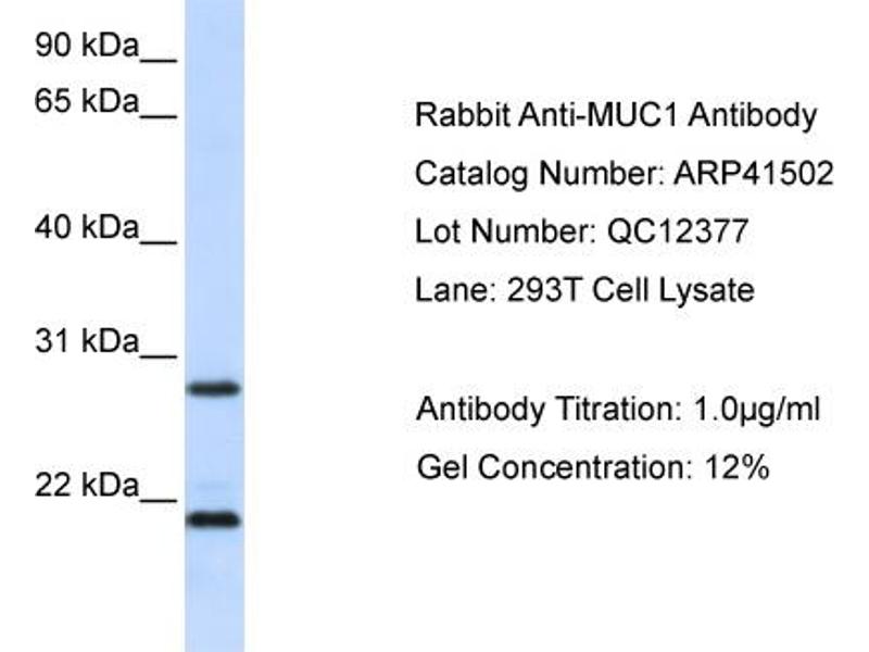 - This is a rabbit polyclonal antibody against MUC1. It was validated on Western Blot using a cell lysate as a positive control.