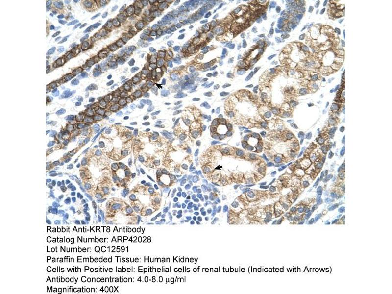- This is a rabbit polyclonal antibody against KRT8. It was validated on Western Blot and immunohistochemistry.