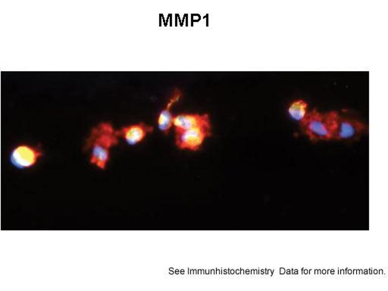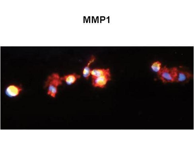 Proteins of the matrix metalloproteinase (MMP) family are involved in the breakdown of extracellular matrix in normal physiological processes, such as embryonic development, reproduction, and tissue remodeling, as well as in disease processes, such as arthritis and metastasis. Most MMP's are secreted as inactive proproteins which are activated when cleaved by extracellular proteinases. MMP1 is a secreted enzyme which breaks down the interstitial collagens, types I, II, and III.Proteins of the matrix metalloproteinase (MMP) family are involved in the breakdown of extracellular matrix in normal physiological processes, such as embryonic development, reproduction, and tissue remodeling, as well as in disease processes, such as arthritis and metastasis. Most MMP's are secreted as inactive proproteins which are activated when cleaved by extracellular proteinases. This gene encodes a secreted enzyme which breaks down the interstitial collagens, types I, II, and III. The gene is part of a cluster of MMP genes which localize to chromosome 11q22.3.Proteins of the matrix metalloproteinase (MMP) family are involved in the breakdown of extracellular matrix in normal physiological processes, such as embryonic development, reproduction, and tissue remodeling, as well as in disease processes, such as arthritis and metastasis. Most MMP's are secreted as inactive proproteins which are activated when cleaved by extracellular proteinases. This gene encodes a secreted enzyme which breaks down the interstitial collagens, types I, II, and III. The gene is part of a cluster of MMP genes which localize to chromosome 11q22.3.