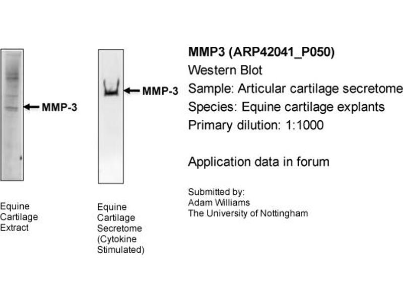 - This is a rabbit polyclonal antibody against MMP3. It was validated on Western Blot.
