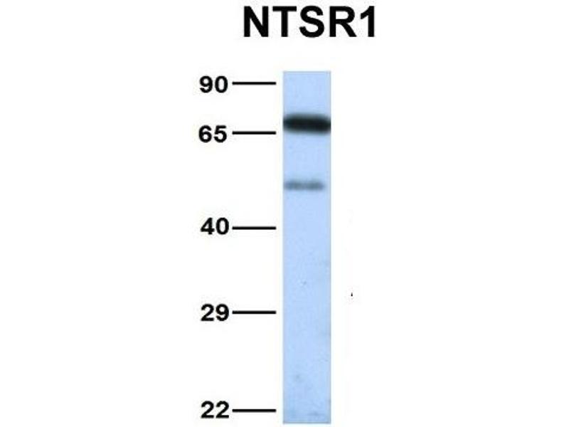 - This is a rabbit polyclonal antibody against NTSR1. It was validated on Western Blot using a cell lysate as a positive control.