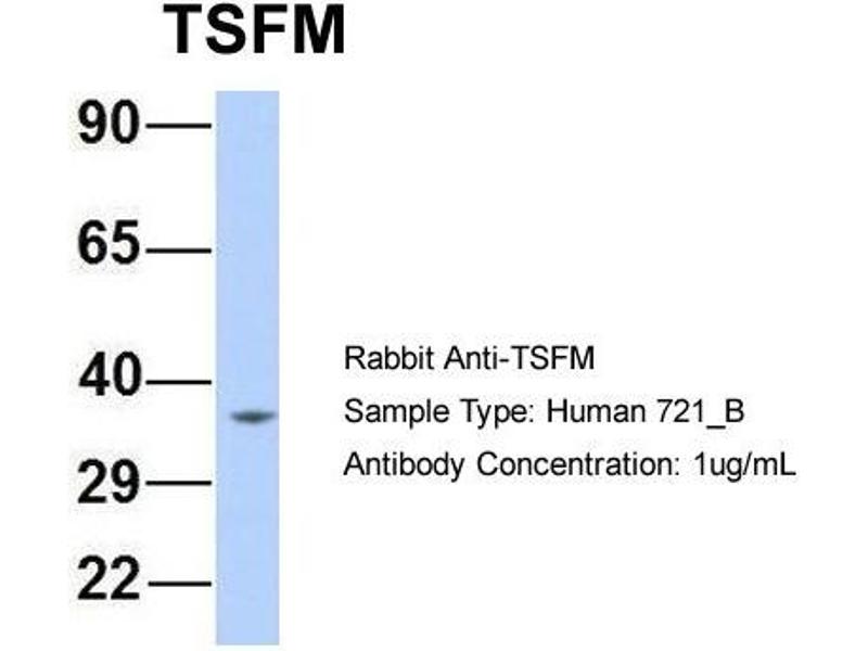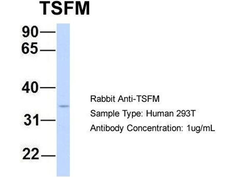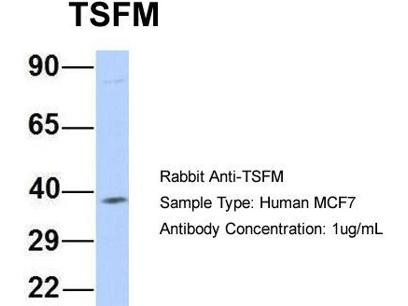 - This is a rabbit polyclonal antibody against TSFM. It was validated on Western Blot using a cell lysate as a positive control.