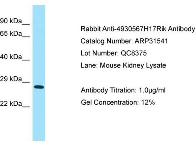 - This is a rabbit polyclonal antibody against 4930567H17Rik. It was validated on Western Blot.