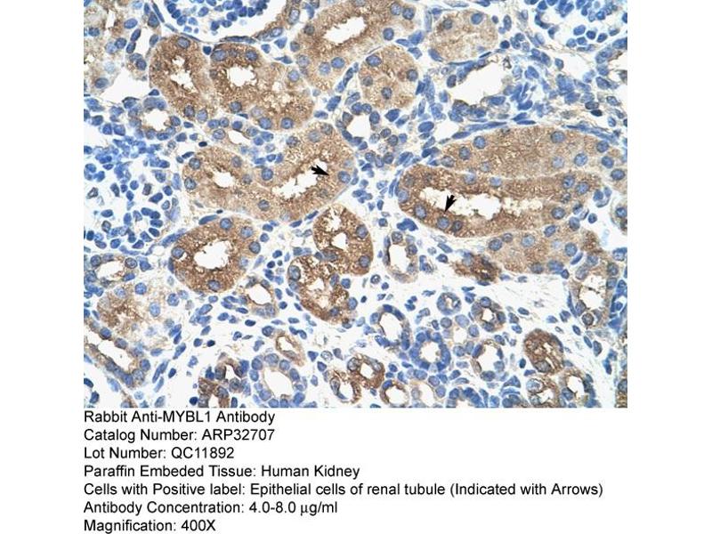 - This is a rabbit polyclonal antibody against MYBL1. It was validated on Western Blot and immunohistochemistry.