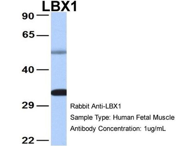 - This is a rabbit polyclonal antibody against LBX1. It was validated on Western Blot using a cell lysate as a positive control.