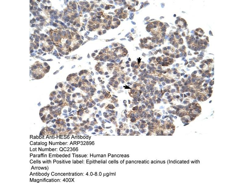 - This is a rabbit polyclonal antibody against HES6. It was validated on Western Blot and immunohistochemistry.