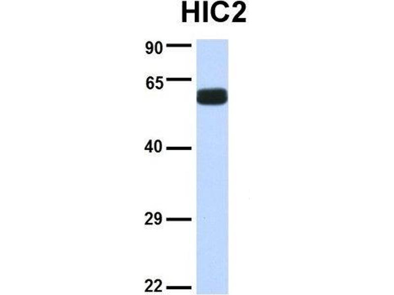 - This is a rabbit polyclonal antibody against HIC2. It was validated on Western Blot using a cell lysate as a positive control.
