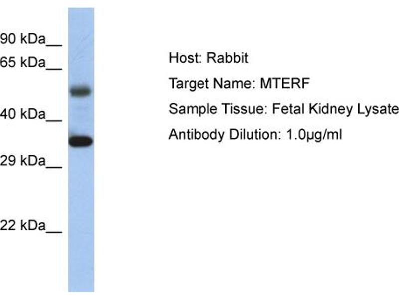 This gene encodes a mitochondrial transcription termination factor. This protein participates in attenuating transcription from the mitochondrial genome, this attenuation allows higher levels of expression of 16S ribosomal RNA relative to the tRNA gene downstream. The product of this gene has three leucine zipper motifs bracketed by two basic domains that are all required for DNA binding. There is evidence that, for this protein, the zippers participate in intramolecular interactions that establish the three-dimensional structure required for DNA binding. Alias Symbols: MTERF Protein Size: 379
