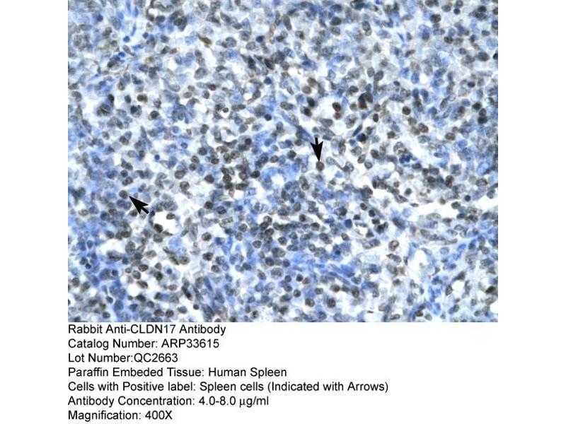 - This is a rabbit polyclonal antibody against CLDN17. It was validated on Western Blot and immunohistochemistry.