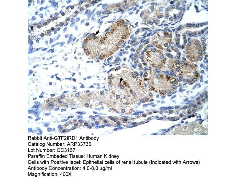 - This is a rabbit polyclonal antibody against GTF2IRD1. It was validated on Western Blot and immunohistochemistry.