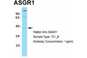 - This is a rabbit polyclonal antibody against ASGR1. It was validated on Western Blot using a cell lysate as a positive control.