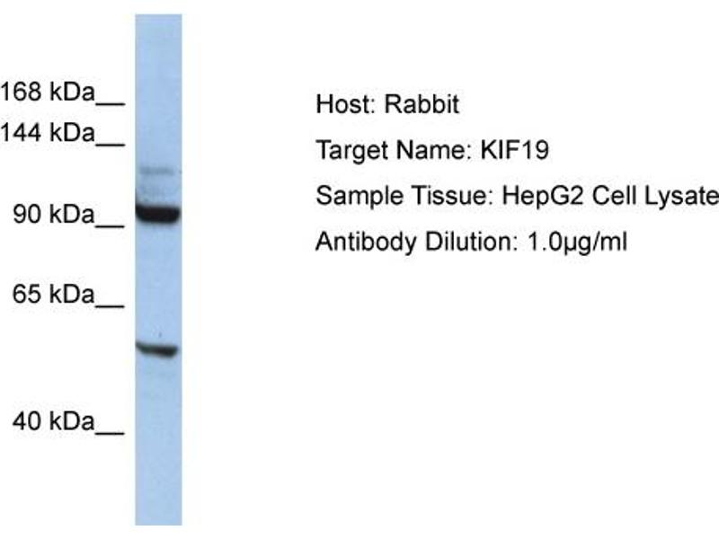 - This is a rabbit polyclonal antibody against KIF19. It was validated on Western Blot.