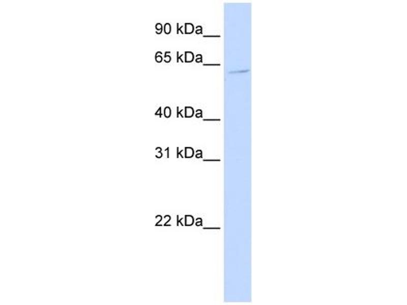This is a rabbit polyclonal antibody against ZNF579. It was validated on Western Blot using a cell lysate as a positive control.