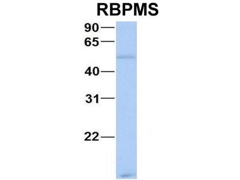 - This is a rabbit polyclonal antibody against RBPMS. It was validated on Western Blot using a cell lysate as a positive control.