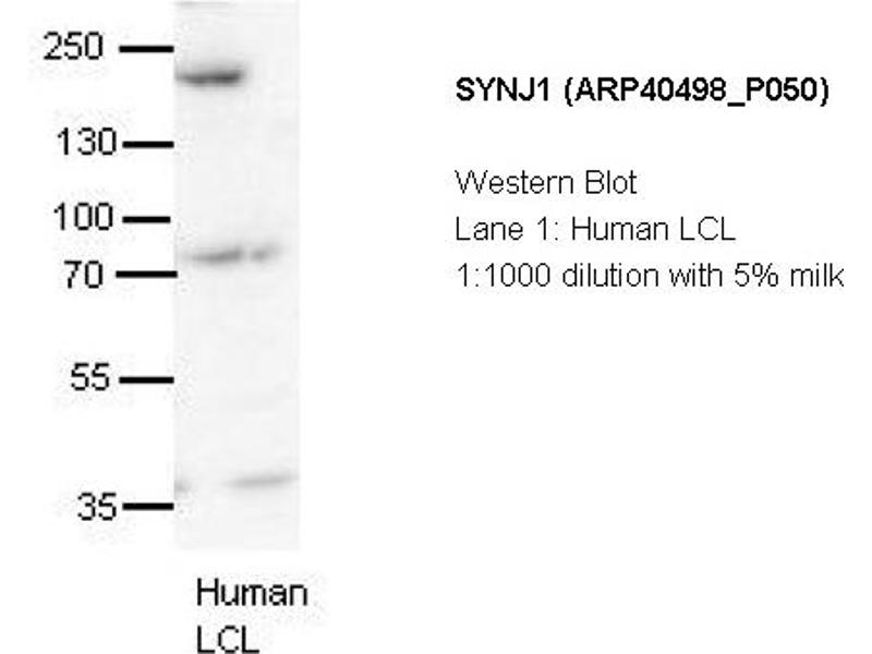 - The immunogen is a synthetic peptide directed towards the N terminal region of human SYNJ1
