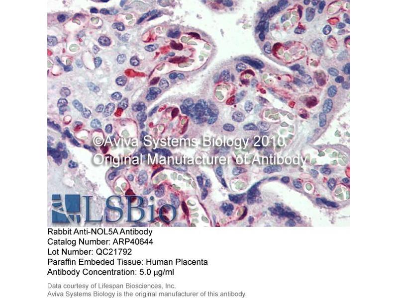 - The immunogen is a synthetic peptide directed towards the middle region of human NOL5A