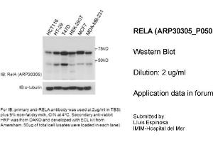 - This is a rabbit polyclonal antibody against RELA. It was validated on Western Blot using a cell lysate as a positive control.
