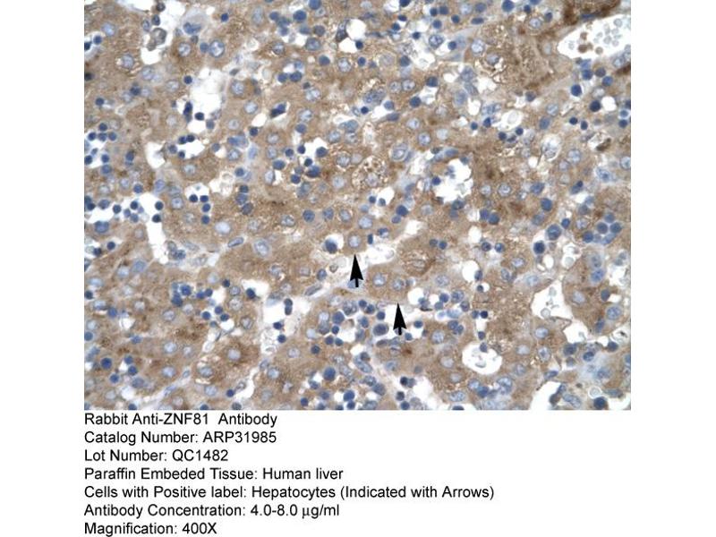 - This is a rabbit polyclonal antibody against ZNF81. It was validated on Western Blot and immunohistochemistry.