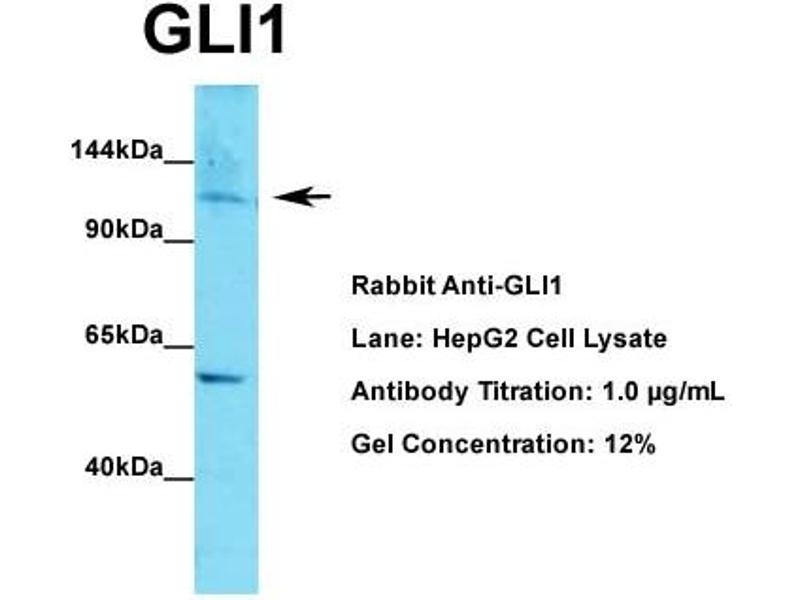 - This is a rabbit polyclonal antibody against GLI1. It was validated on Western Blot using a cell lysate as a positive control.