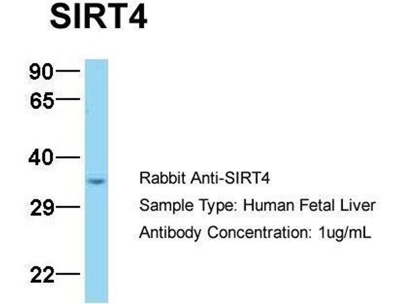 - This is a rabbit polyclonal antibody against SIRT4. It was validated on Western Blot using a cell lysate as a positive control.