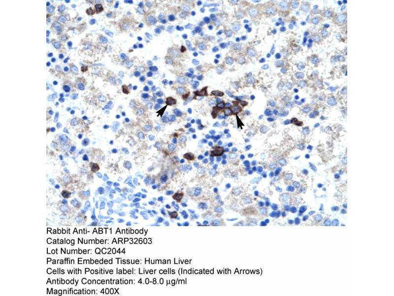 - This is a rabbit polyclonal antibody against ABT1. It was validated on Western Blot and immunohistochemistry.