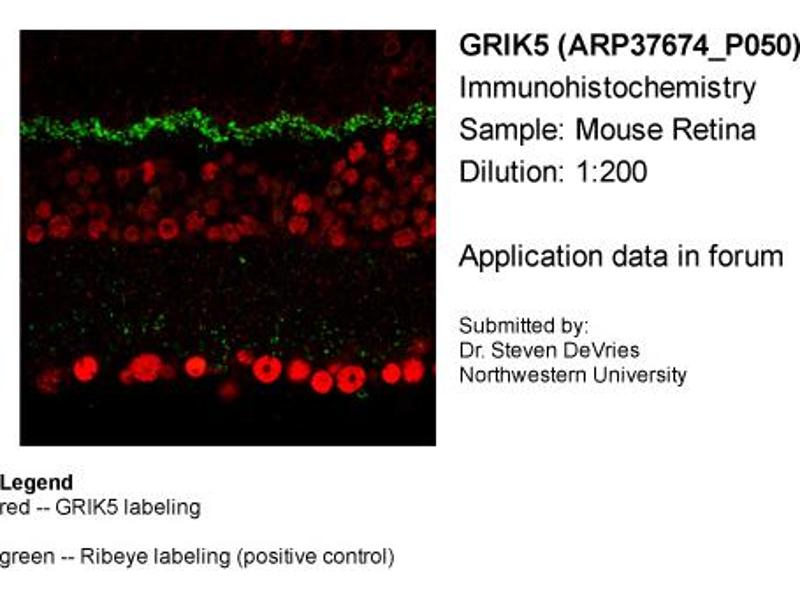 - This is a rabbit polyclonal antibody against GRIK5. It was validated on Western Blot using a cell lysate as a positive control.